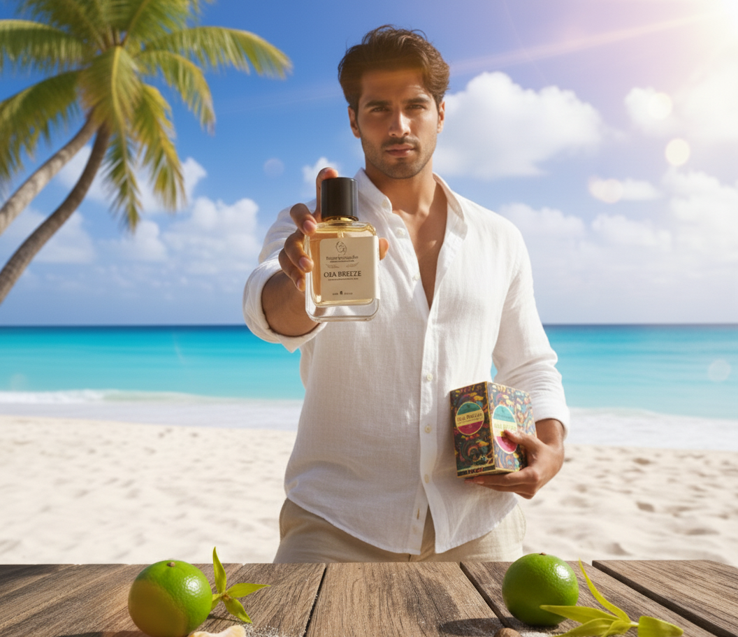 "Goa Breeze Men's Premium Perfume, 50 ml | Handcrafted" is a fragrance blending fougère and chypre inspirations, with lively Mandarin, Bergamot, and Ylang Ylang top notes, a heart of Geranium, Gardenia, and Nutmeg, and a captivating base of Patchouli, Musk, and Tonka Beans. Fresh and Comfy